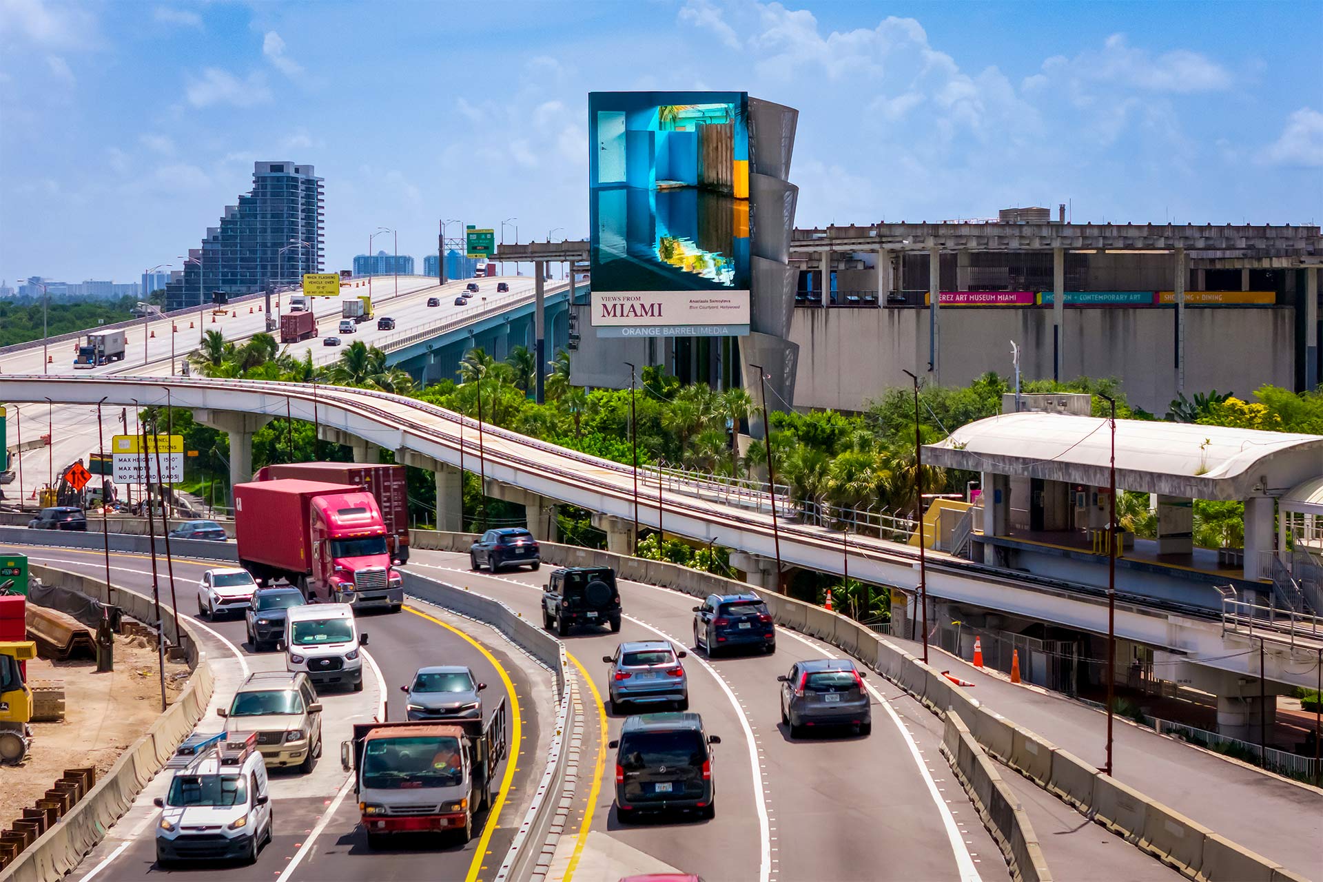 Situated on Biscayne Bay in Downtown Miami, Pérez Art Museum Miami (PAMM) is the city’s most significant art museum, offering dynamic exhibitions, tours, and educational programming. OBM worked with PAMM to develop a dual-sided architectural spectacular that feature coordinated lighting elements. Designed by celebrated firm Arquitectonica, the elegant, diaphanous tower evokes local flora and is carefully positioned to maintain sight lines to the museum’s existing architecture. This public-private partnership generates a new stream of earned income and presents artwork to a broad public throughout the year.